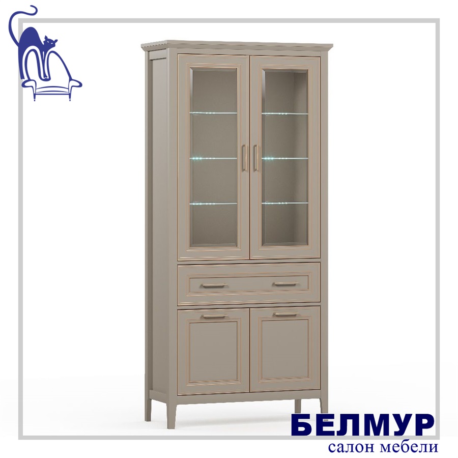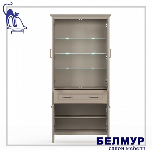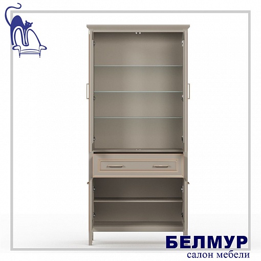 - в верхней части шкафа расположены 2 распашные двери со стеклянными вставками (стекло с фацетом)