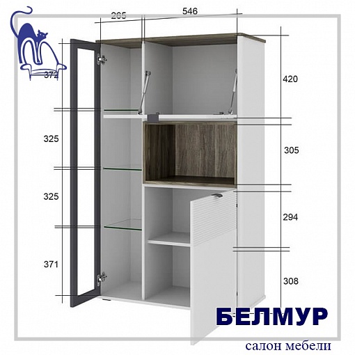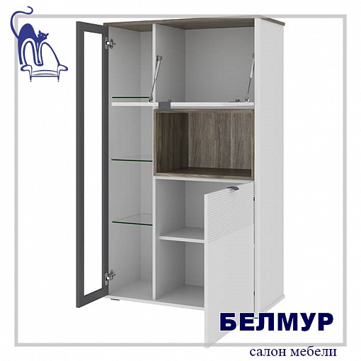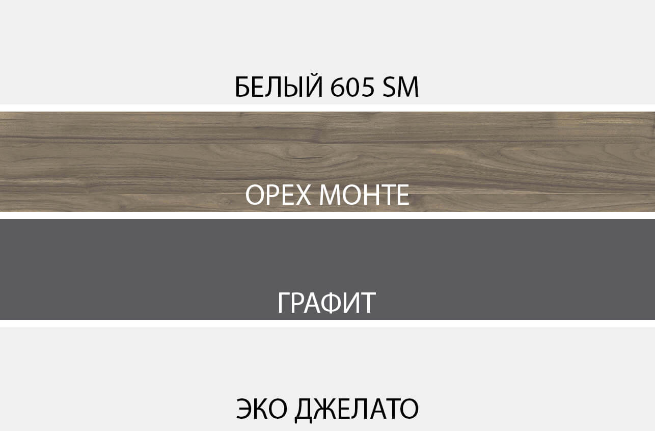 | Материал фасадов | ЛДСП 16 мм, цвет: белый+МДФ фрезерованый 16 мм, цвет: эко джелато, рамка МДФ 25 мм, окутанная финиш-пленкой, цвет: графит. |