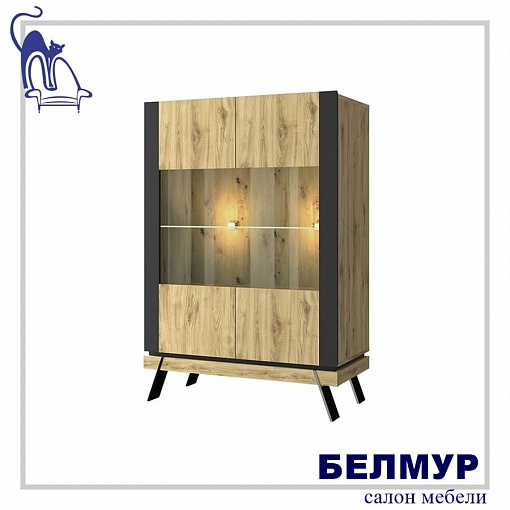 STREET Шкаф с витриной 2V. Цвет ДУБ НАВАРРА / ЧЁРНЫЙ