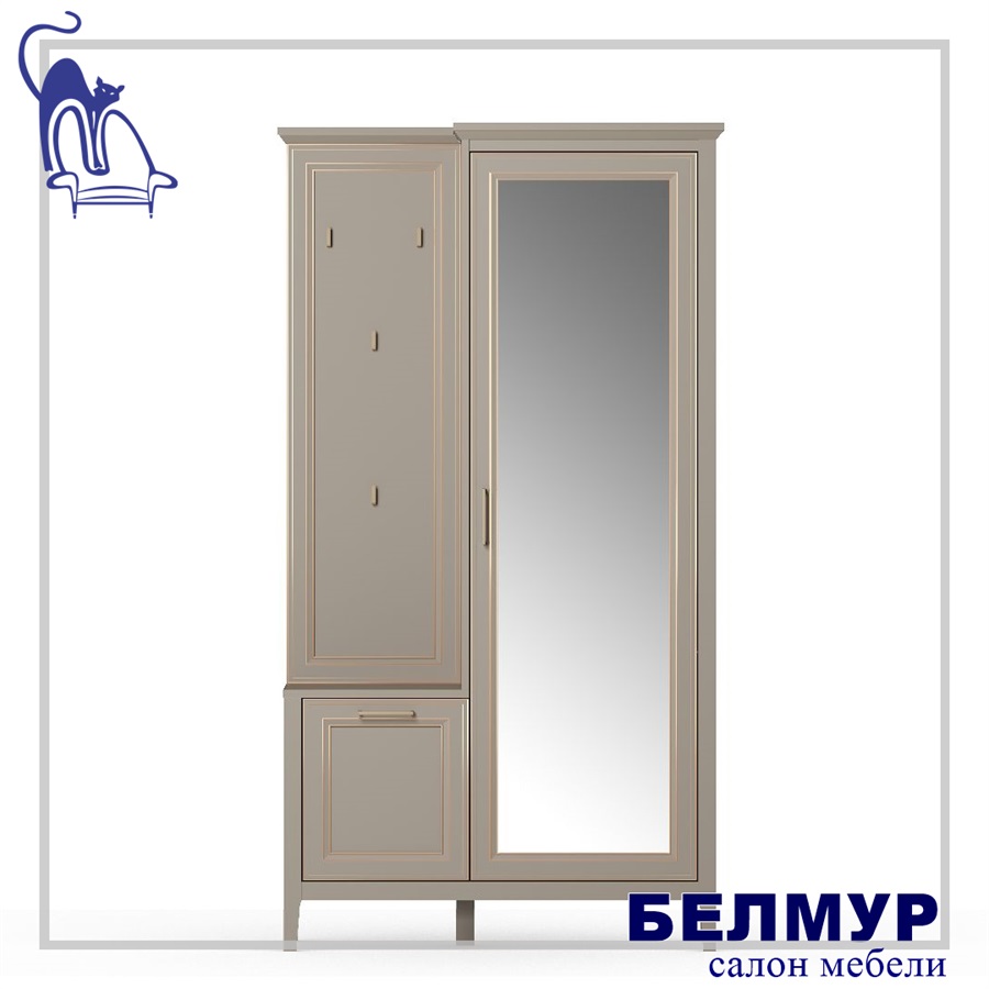 - в правой части шкафа расположено отделение с выдвижной металлической вешалкой за дверью с зеркальной вставкой