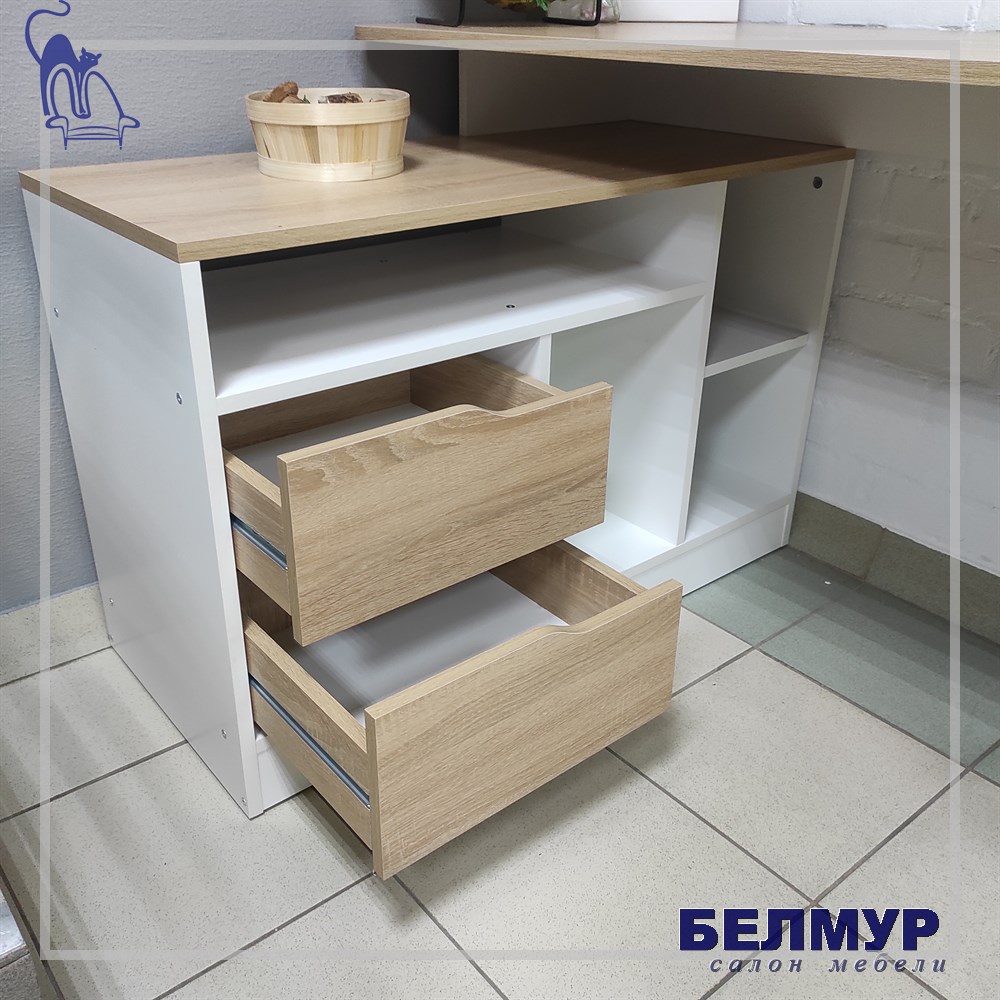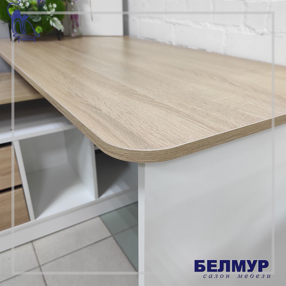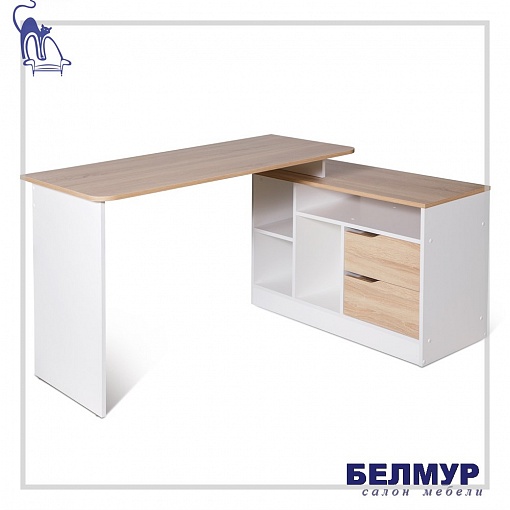 Стол Имидж-3/ Белый-Дуб сонома (тумба поперек)