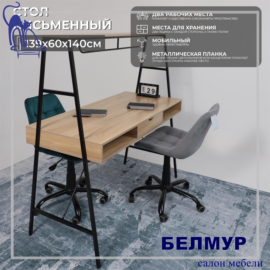 Стол письменный VECTOR, светлый дуб/черный металл, 1390*600*1400