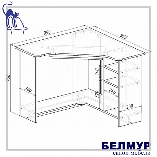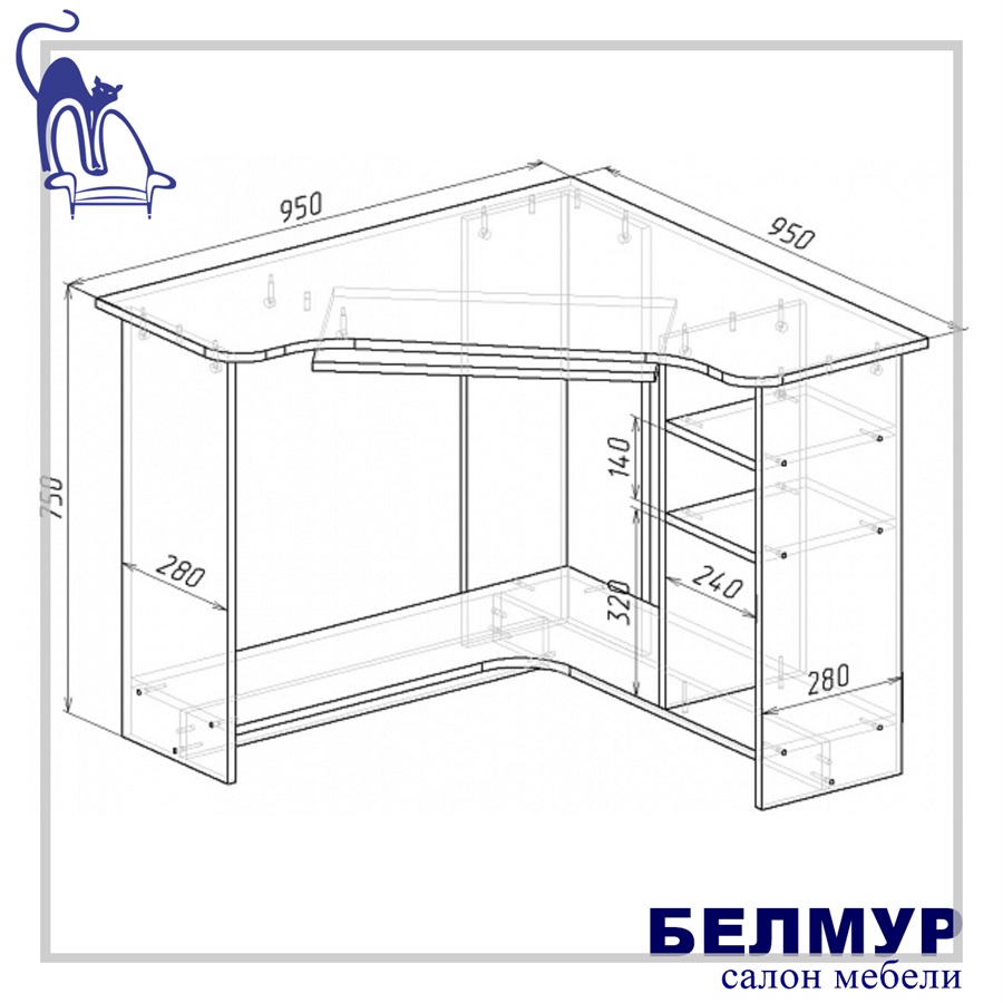 Описание | Угловой стол. Универсальное исполнение: Стол может быть собран тумбой как на левую, так и на правую сторону! |