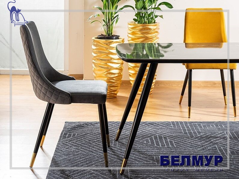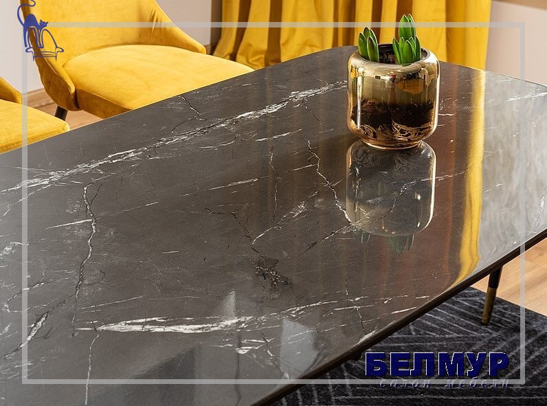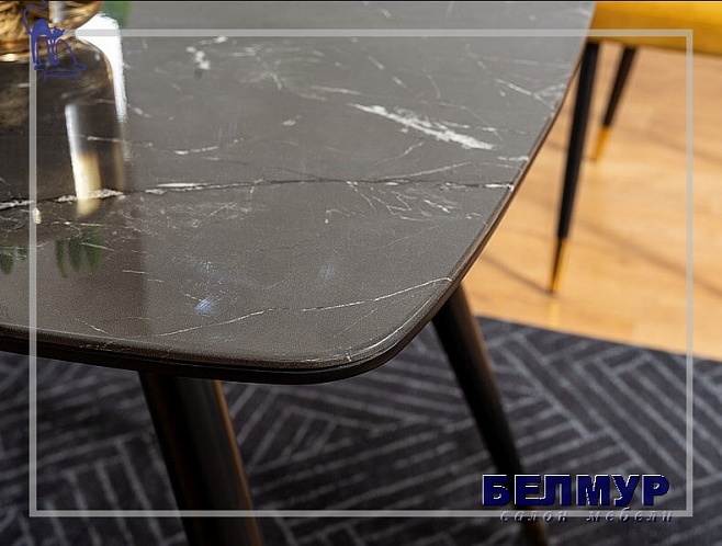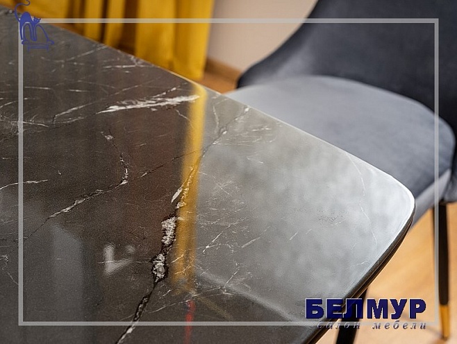 Стол обеденный SIGNAL CYRYL I эффект черного камня/черный/золотой, 140/80 CYRYLCC140