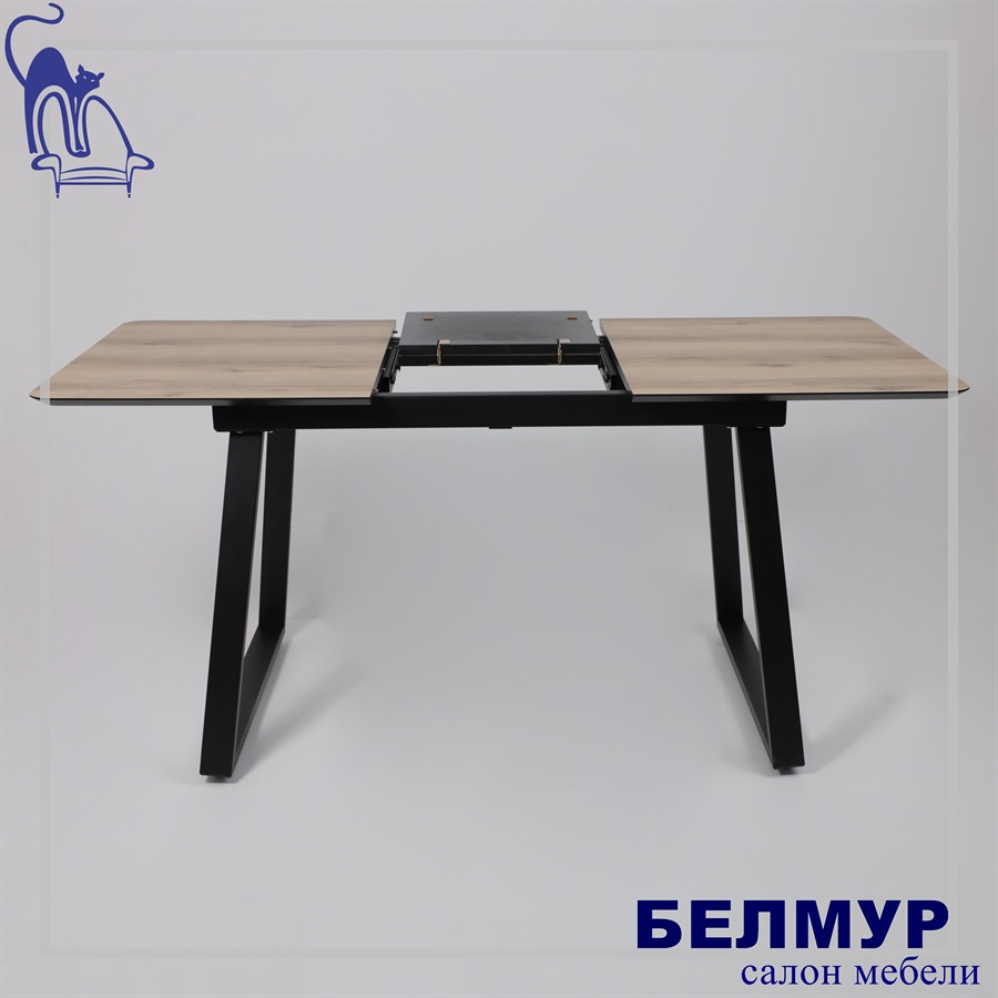 Стол AV 1208, HPL+МДФ, раздвижной 1200 (1600)*800 Дуб Делано натуральный/черный