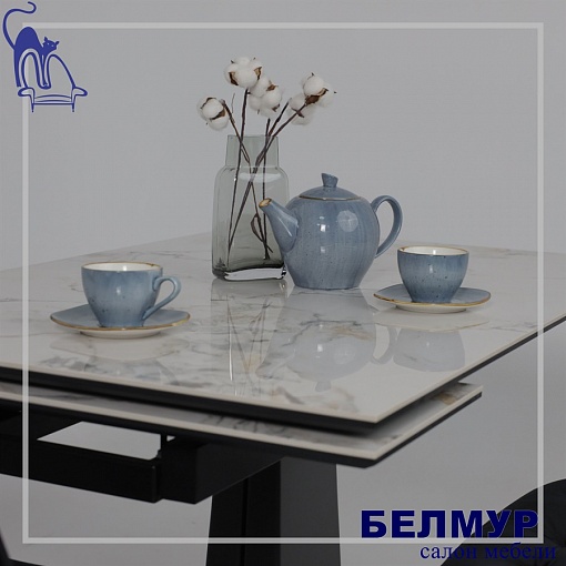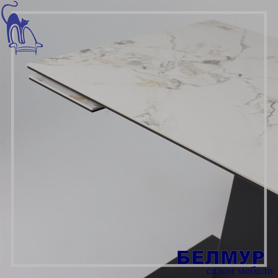 Стол AV 2119, МДФ+керамика, раздвижной 1200 (1800)*800 натуральный, глянцевый GOLD JADE/черный