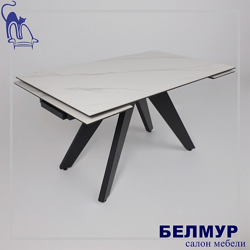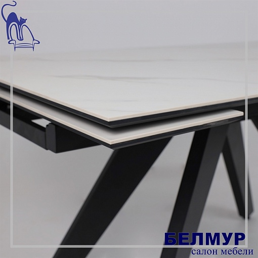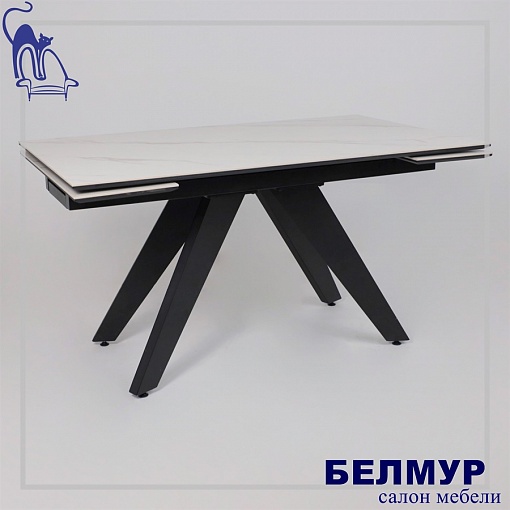 Стол AV 2122, МДФ+керамика, раздвижной 1400 (2000)*850 белый, матовый SNOW WHITE/черный