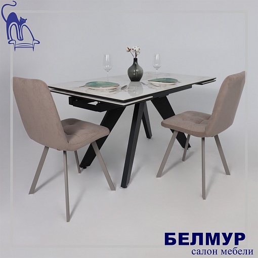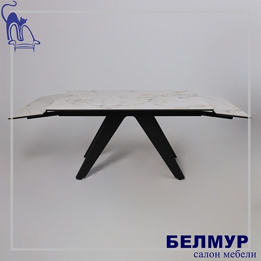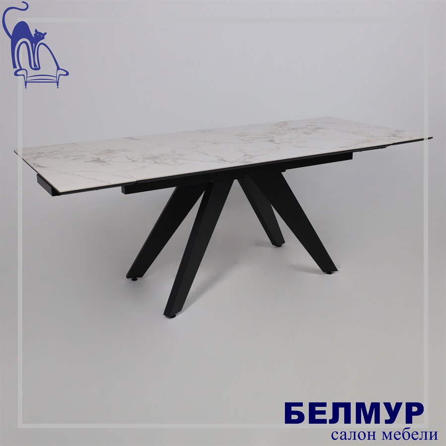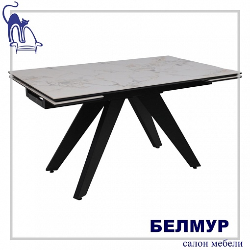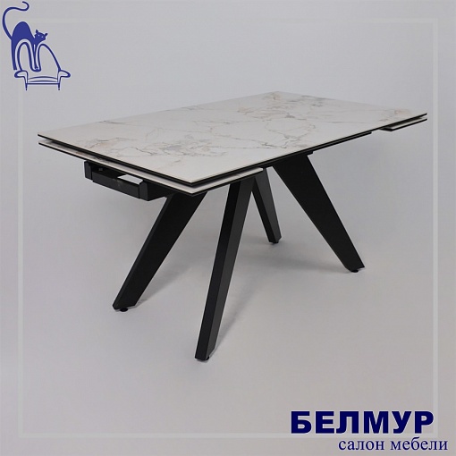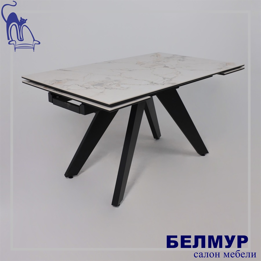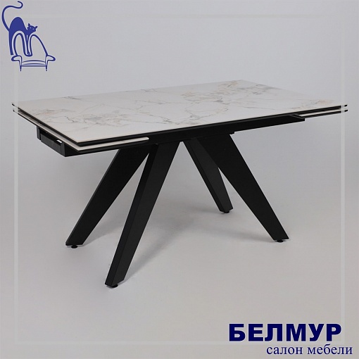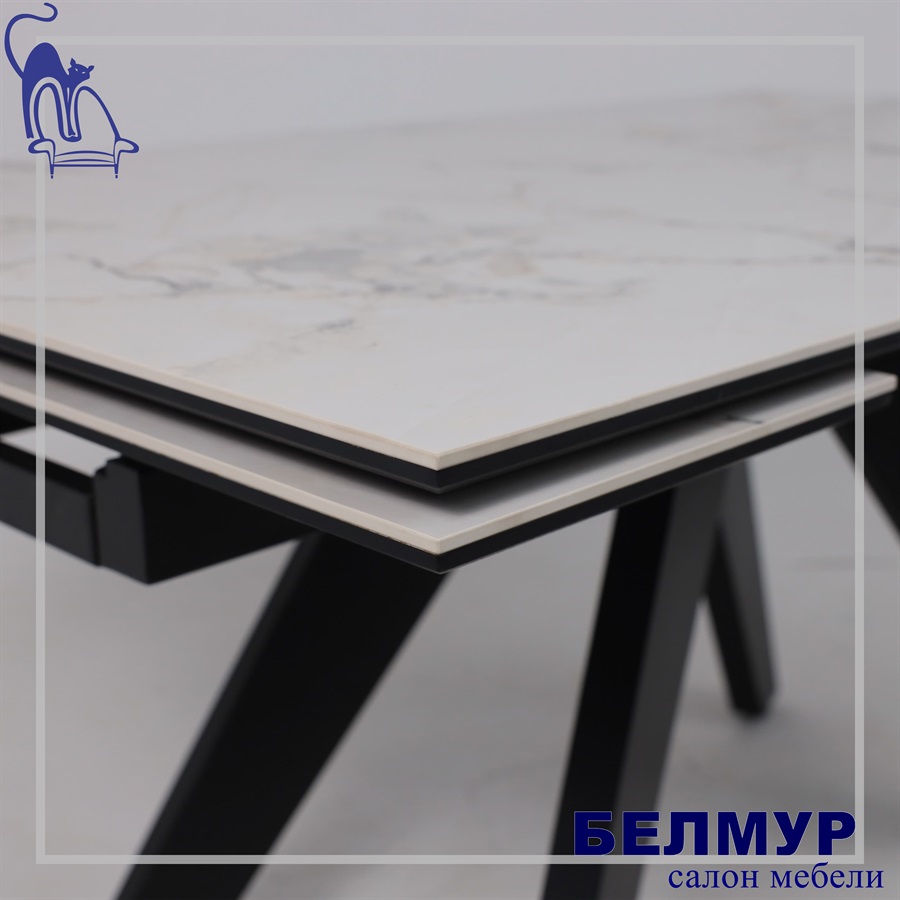 Стол AV 2122, МДФ+керамика, раздвижной 1400 (2000)*850 натуральный, глянцевый GOLD JADE/черный
