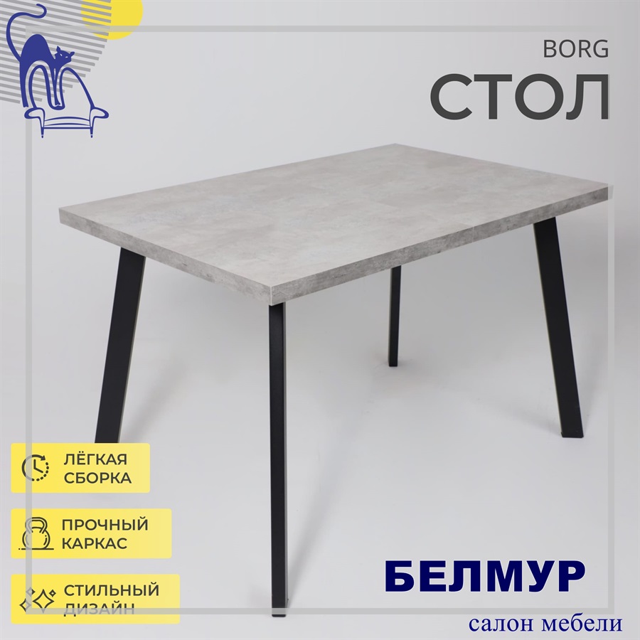 Стол BORG-120, раздвижной 120(160)х80, Серый сланец/Чёрный
