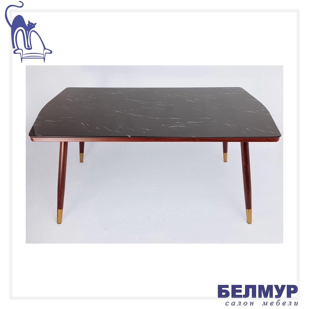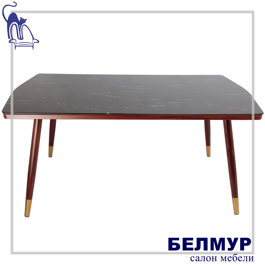 Стол MILLER, 160*90*75, (Черный мрамор/орех с золотым наконечником)