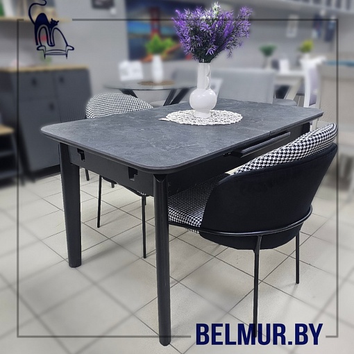 Стол MODUL керамогранит, раздвижной, 130(170)*80*76,Ceramic Fish Maw Black//Black painting
