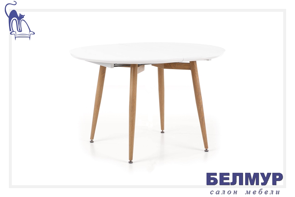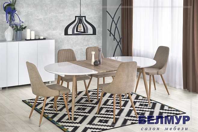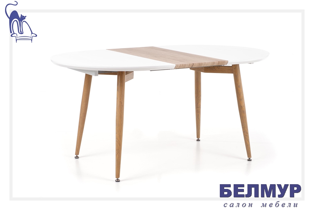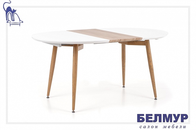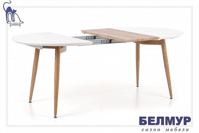 Стол обеденный HALMAR EDWARD раскладной, белый/дуб сан ремо, 120-200/100/75