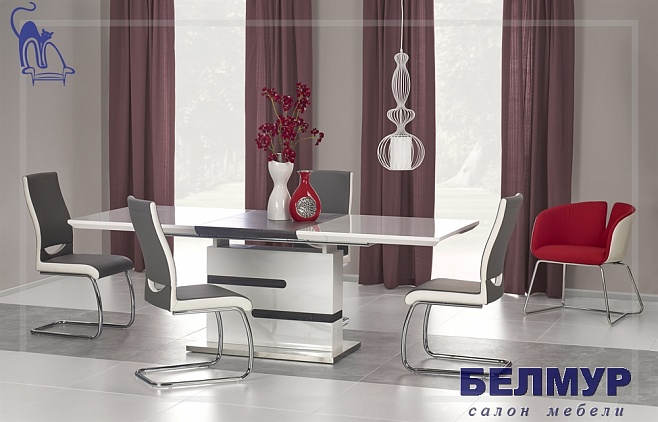 Стол обеденный HALMAR MONACO раскладной, бело\серый, 160-220/90/76