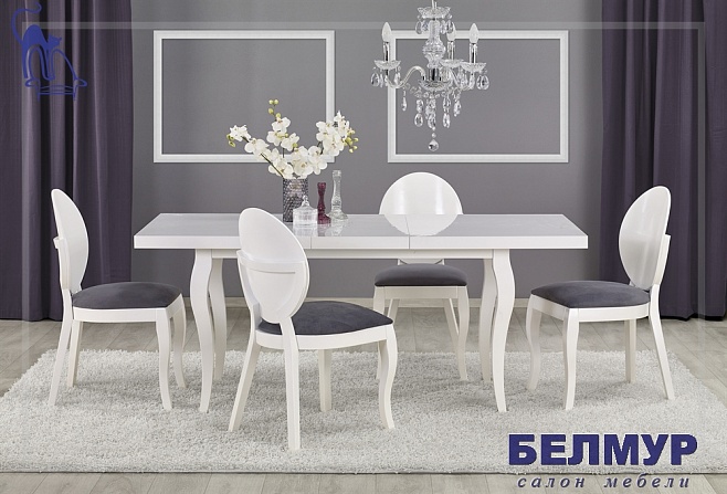 Стол обеденный HALMAR MOZART раскладной, белый, 140-180/80/75