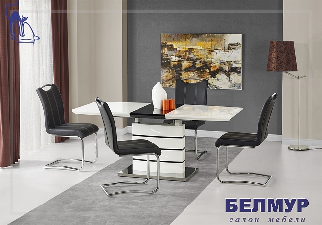 Стол обеденный HALMAR NORD раскладной, бело\черный, 140-180/80/76