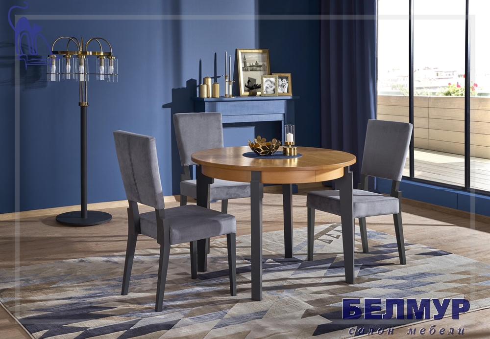 Стол обеденный HALMAR SORBUS раскладной, дуб медовый/графит, 100-200/100/77 NEW