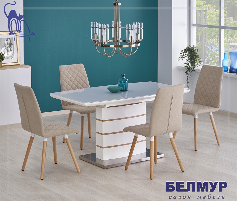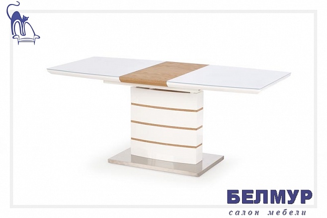 Стол обеденный HALMAR TORONTO раскладной, белый/золотой дуб, 140-180/80/76