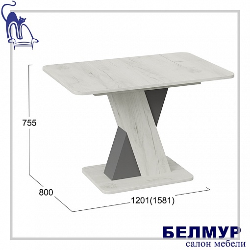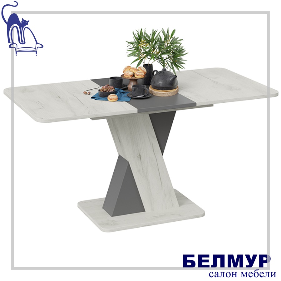 Стол обеденный ЛЮКСЕМБУРГ Тип 3, 1201(1581)*800, дуб крафт белый/серый