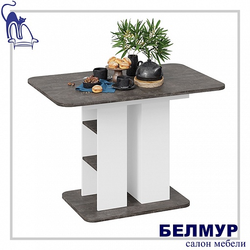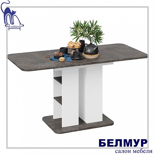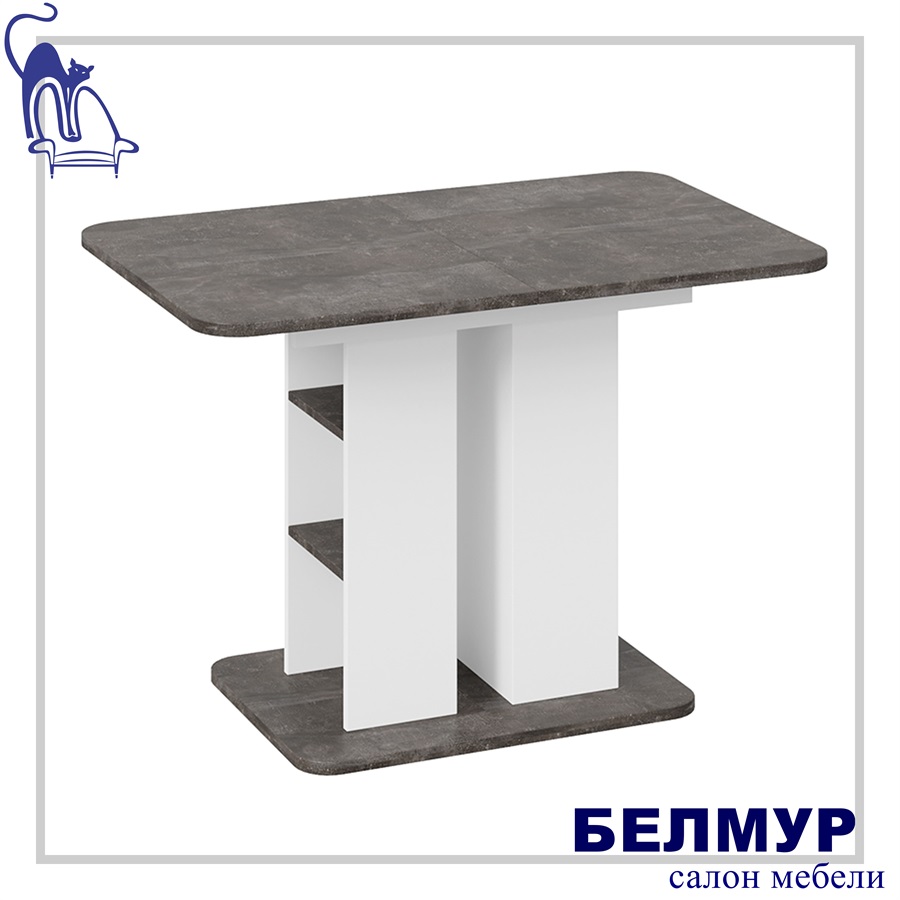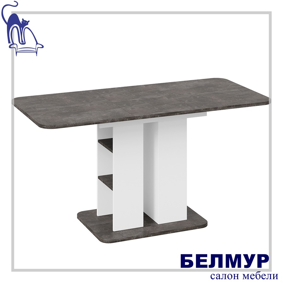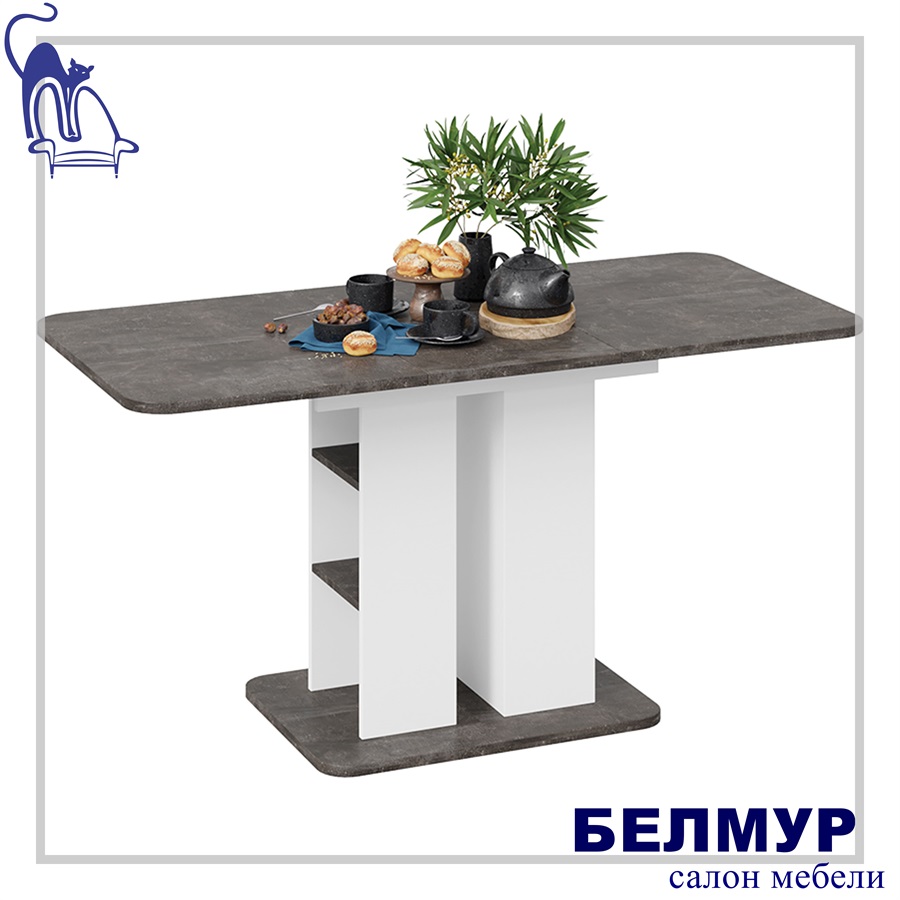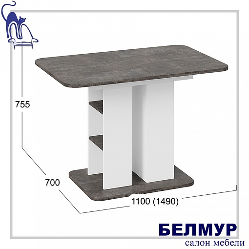 Стол обеденный МЮНХЕН Тип 2, 1100(1490)*700, ателье темный/белый ясень