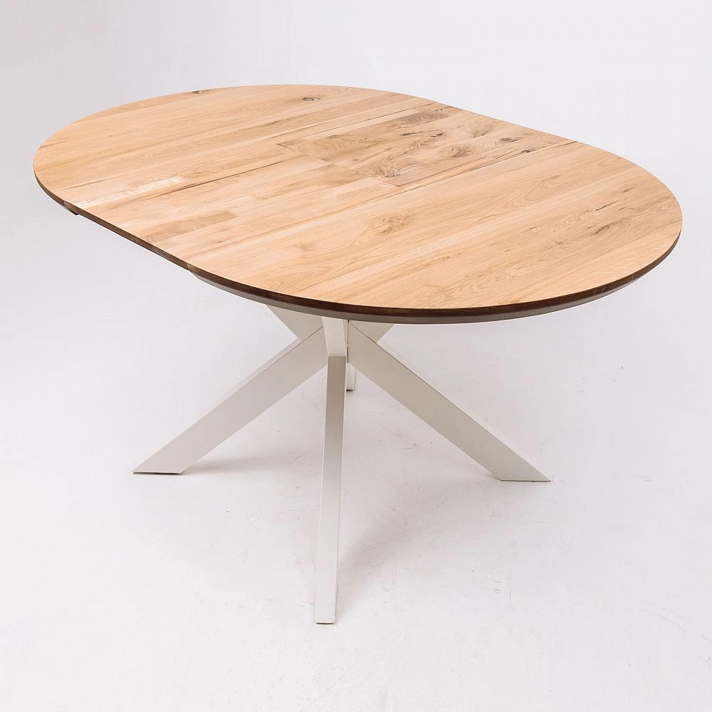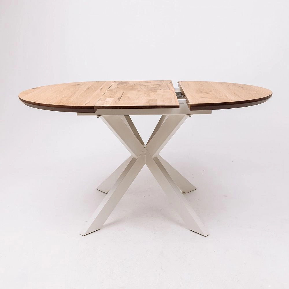 Стол РАУНД, дуб натуральный/белый, 100(140)*75