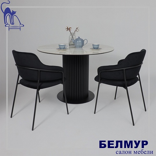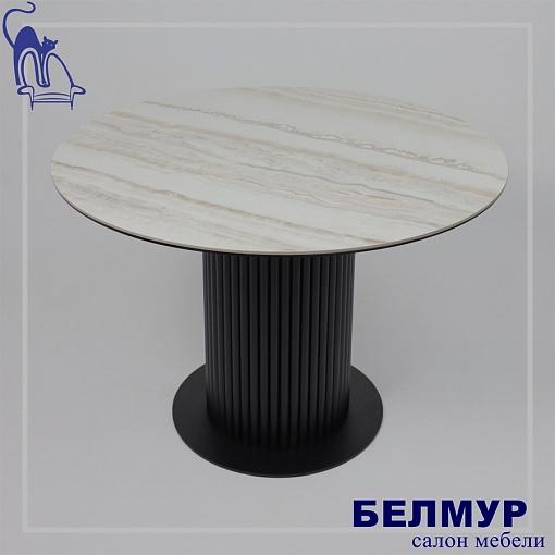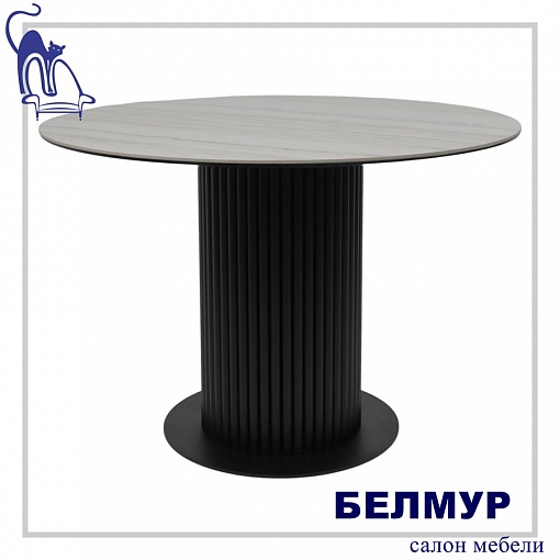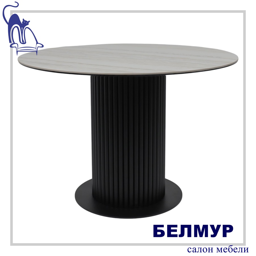 Стол РАУНД,керамика 2 кат. Д 1100, Камень белый Elyt pulido/ Черный матовый