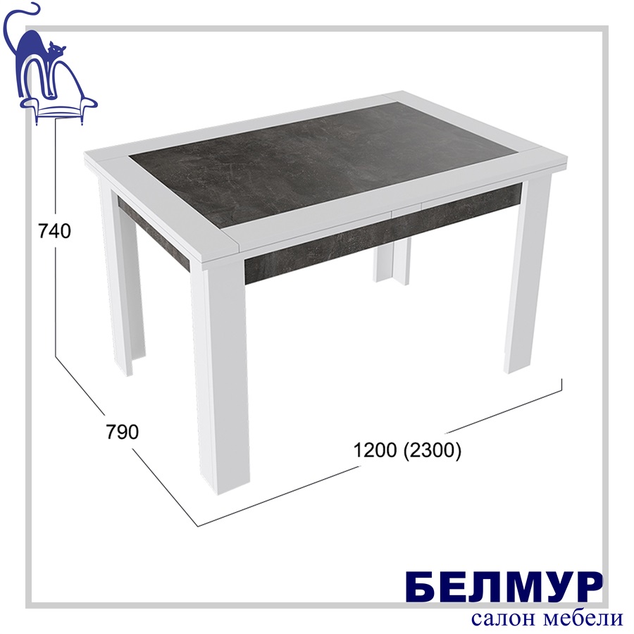 Стол раздвижной ХЬЮСТОН Тип 4, 1200(2300)*790, ателье темный/белый