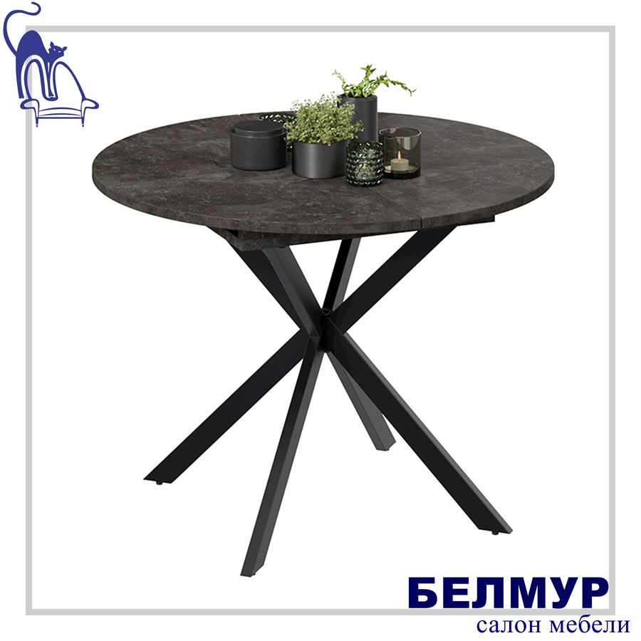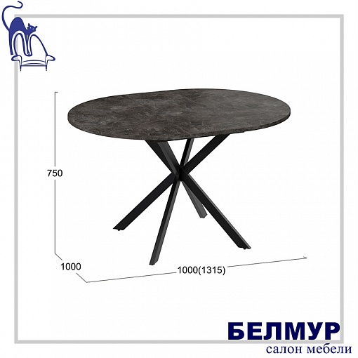 Стол раздвижной МЭДИСОН Тип 1, 1000(1315)х1000х750, черные опоры/ателье темный