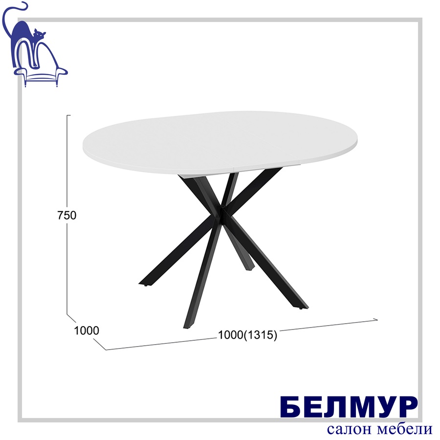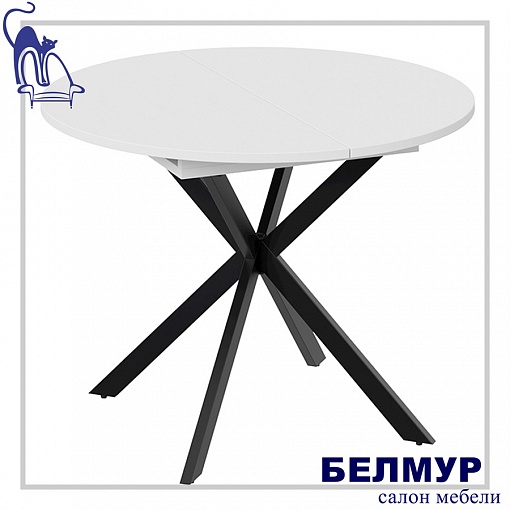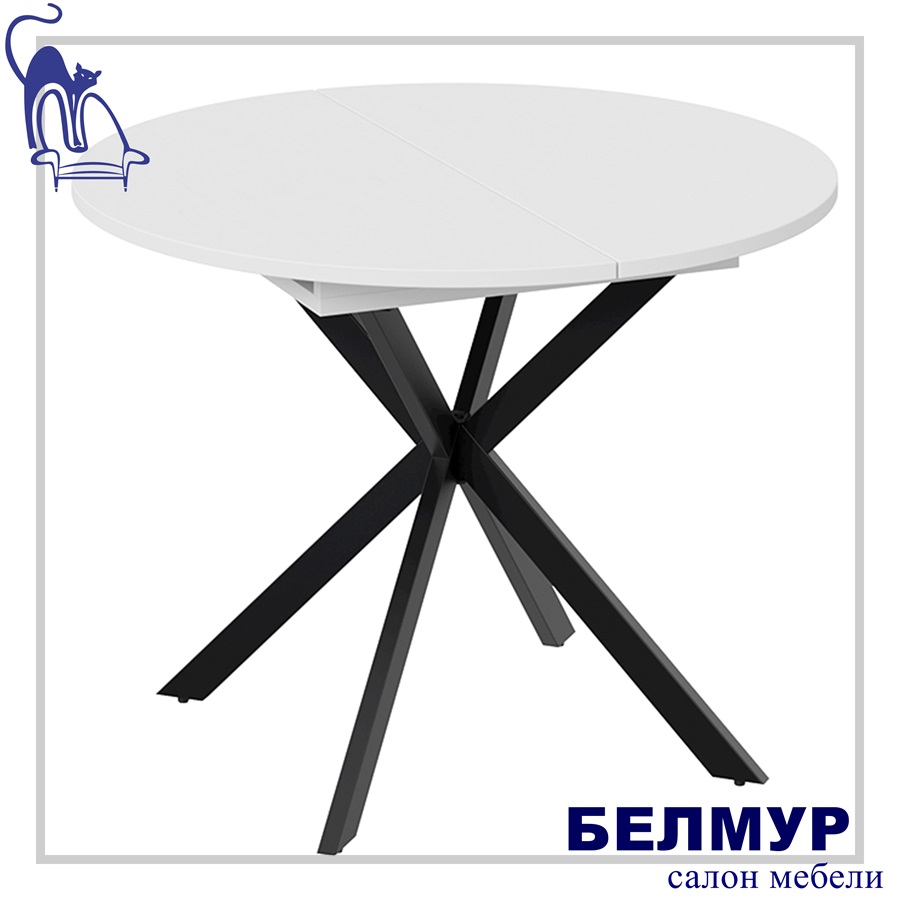 Стол раздвижной МЭДИСОН Тип 1, 1000(1315)х1000х750, черные опоры/белый