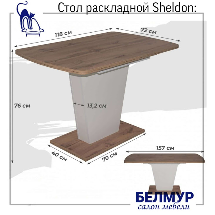 Стол раздвижной на опоре Sheldon, 1180(1570)*720*760, (белый структурный)