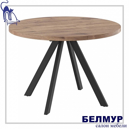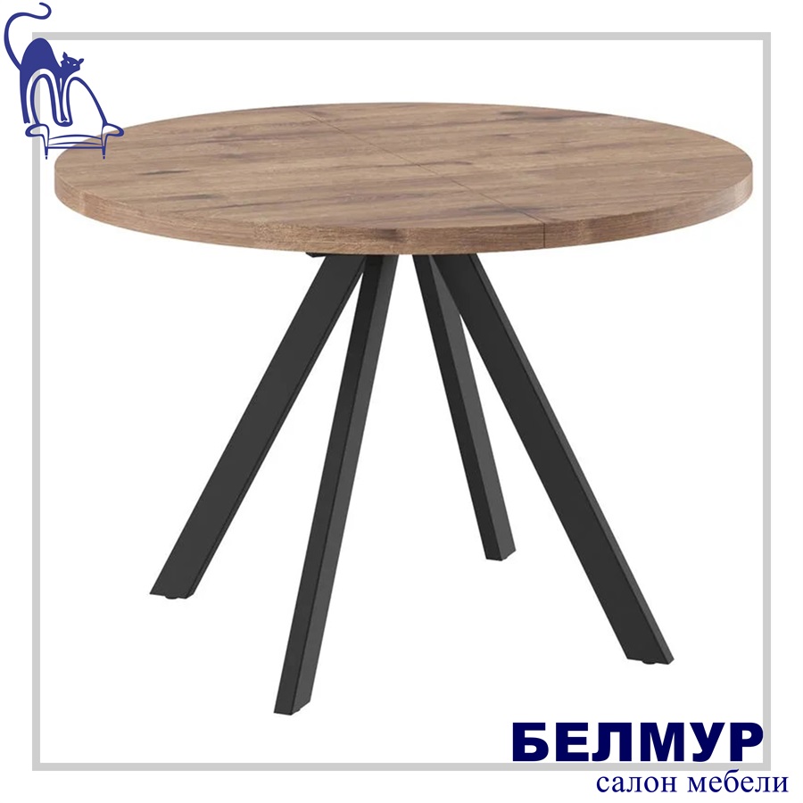 Стол RONDO М-100, круглый раздвижной 100(135), ДУБ ВЕЛЛИНГТОН/Черный