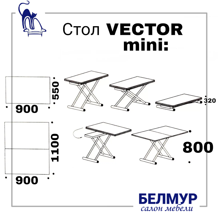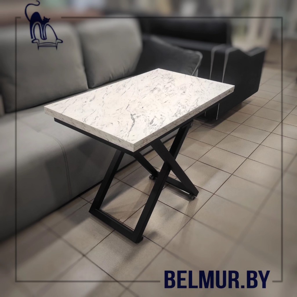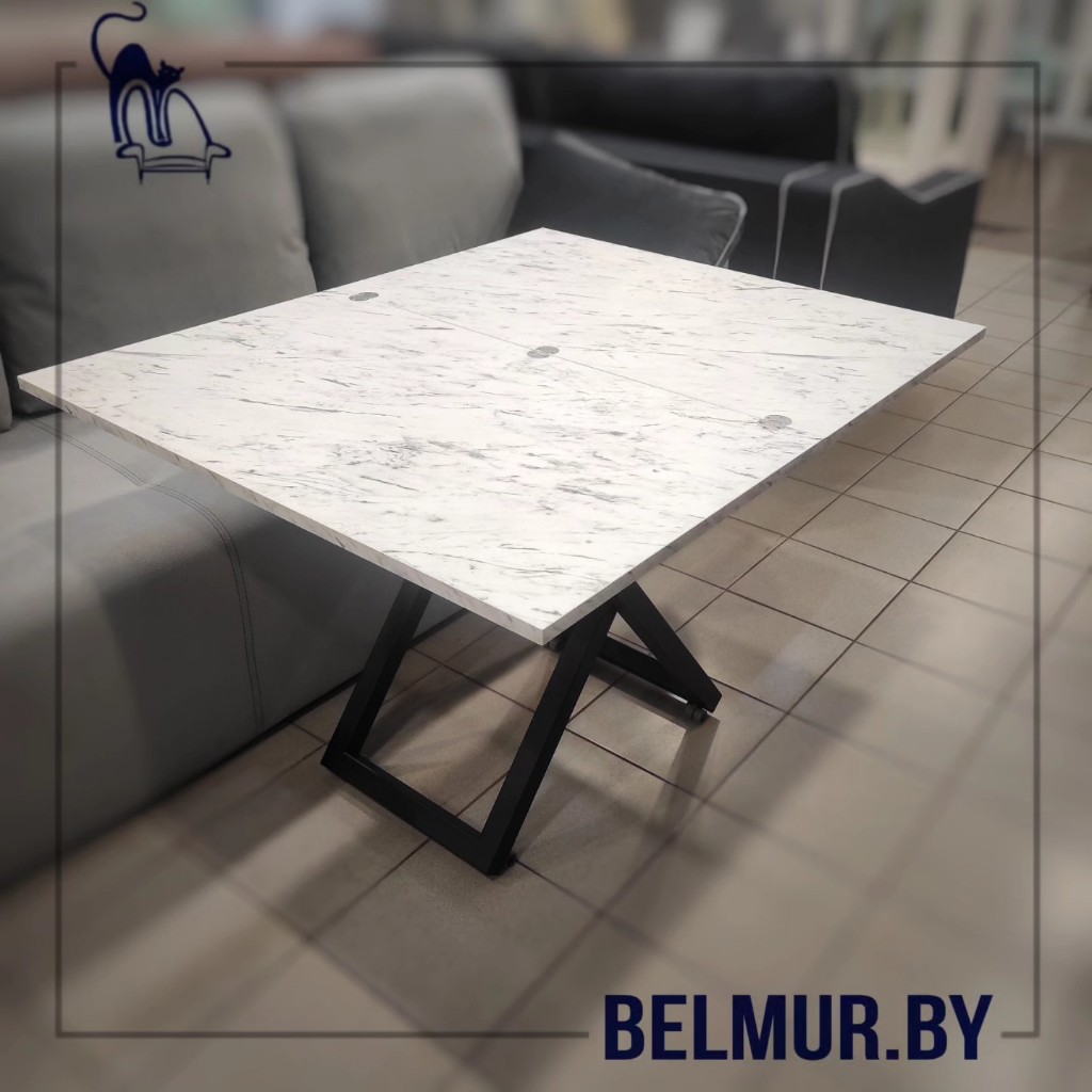 Стол-трансформер Vector mini (Мрамор Каррара/черный перламутр)