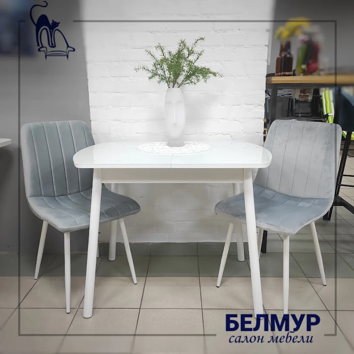 Стол ВИНЕР Mini R раздвижной со стеклом, 94(126)*64*75, Белый/Белый