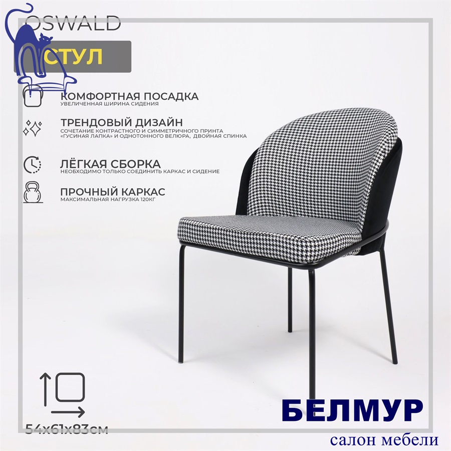 Кресло OSWALD, черный велюр HLR-66/гусиная лапка/черный