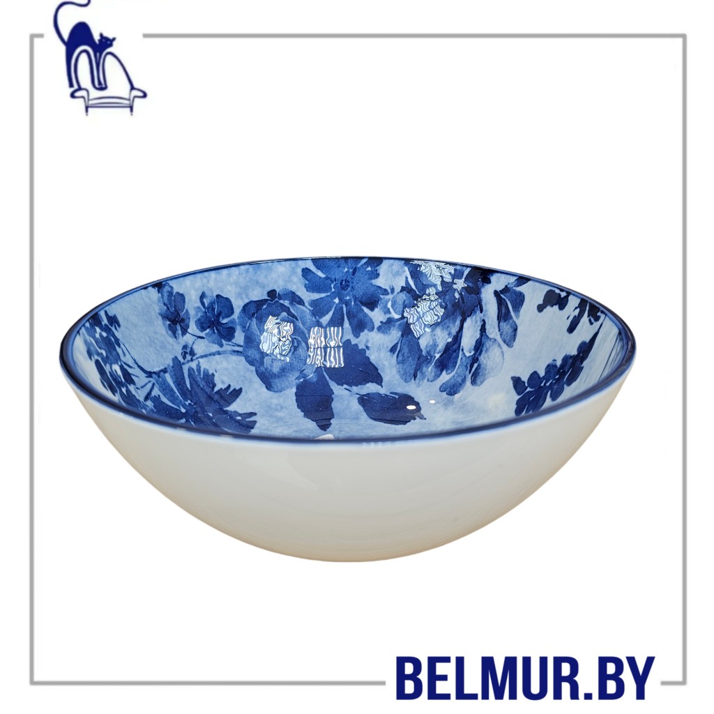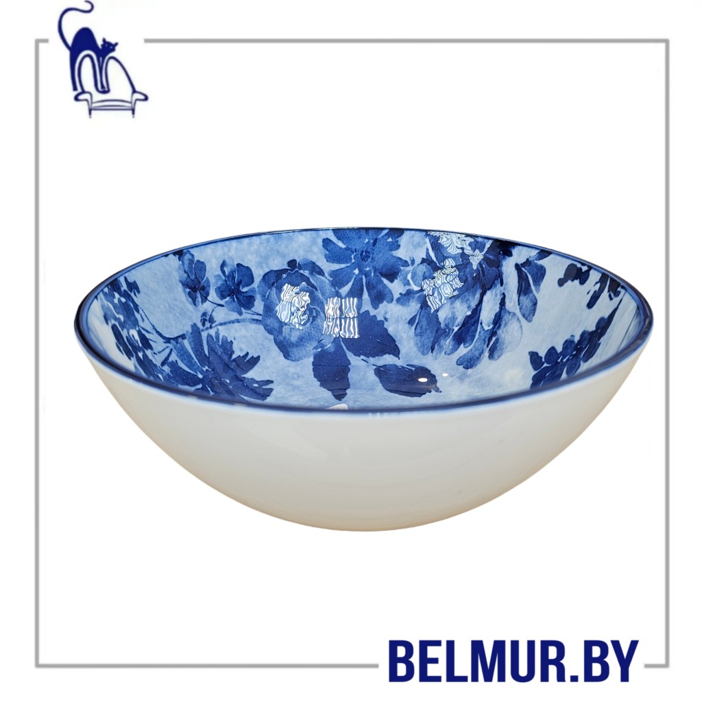 Тарелка керамическая глубокая, сине-белый, D=20см h=7.4см