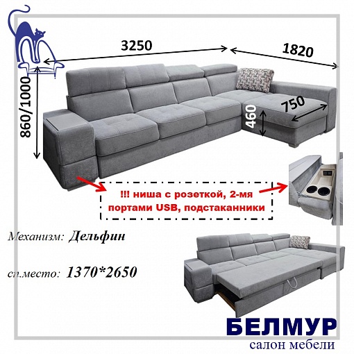 | Подлокотники | есть, 1 открывной с нишей, розеткой,usb- входом и подстаканниками |