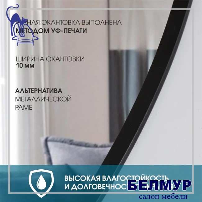 | Описание | Данная модель зеркала круглой формы с чёрной окантовкой. Окантовка выполнена методом УФ-печати, ширина печатного рисунка 10 мм. Рисунок наносится на лицевую поверхность методом фотопечати, в процессе которого краска полимеризуется под воздействием ультрафиолета. УФ-чернила не выцветают, не боятся жиров и растворителей. Изображение имеет матовую текстуру, обладает высокой влагостойкостью и долговечностью покрытия. |
