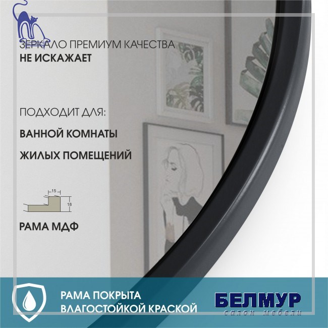 Зеркало круглое в раме МF-007 (D60)
