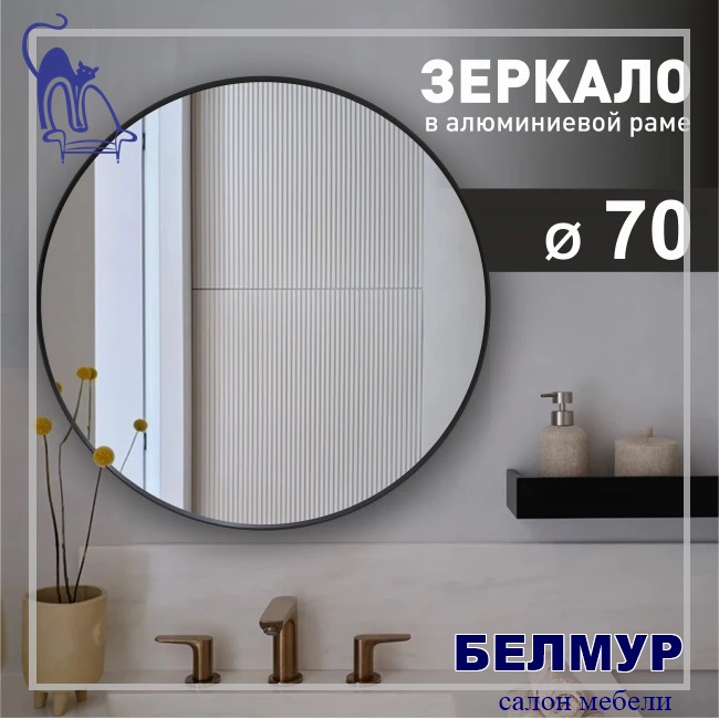 Зеркало MA3-70r black (D 70 cм) в алюминиевой раме/ чёрный