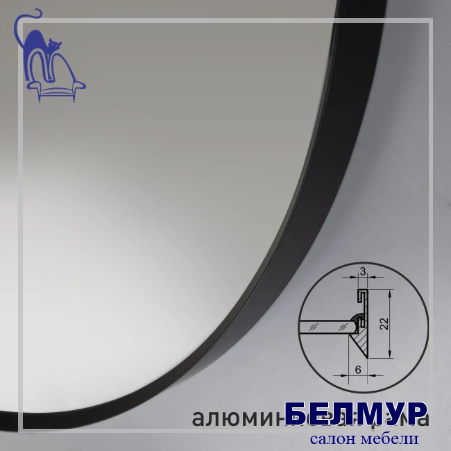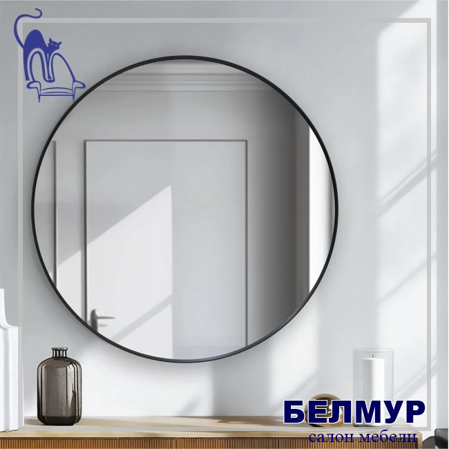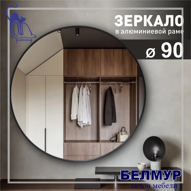 Зеркало MA3-90r black (D 90 cм) в алюминиевой раме/ чёрный