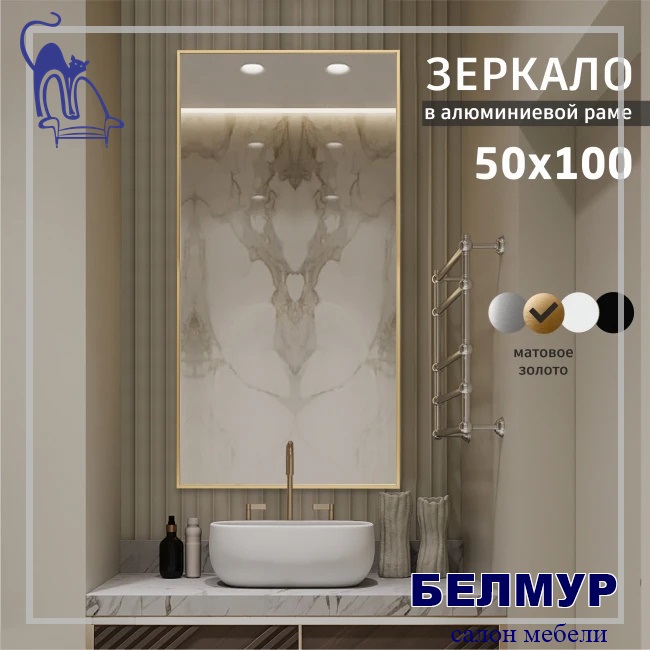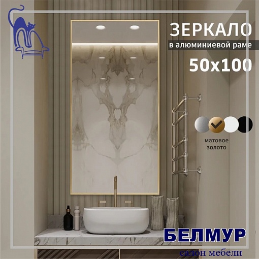 Зеркало прямоугольное в алюминиевой раме M-421 (100x50см)