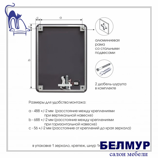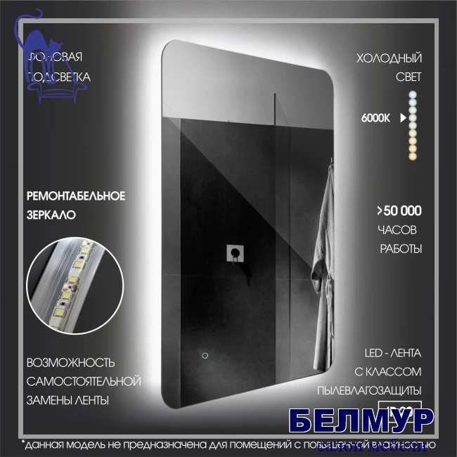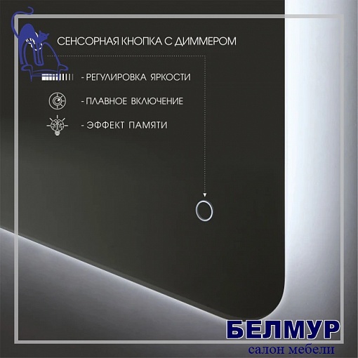 | Описание | Led-зеркало с сенсорной кнопкой с диммером (регулировкой яркости света) с эффектом парения, за счет того, что в качестве подсветки используется светодиодная лента, и свет рассеивается по стене по периметру всего зеркала. Для включения зеркала достаточно дотронуться до сенсора. Для изменения яркости света подержите палец на сенсорной кнопке. Кнопка имеет память (все последующие включения будут на последнем уровне яркости) и приятное для глаз плавное включение света. |