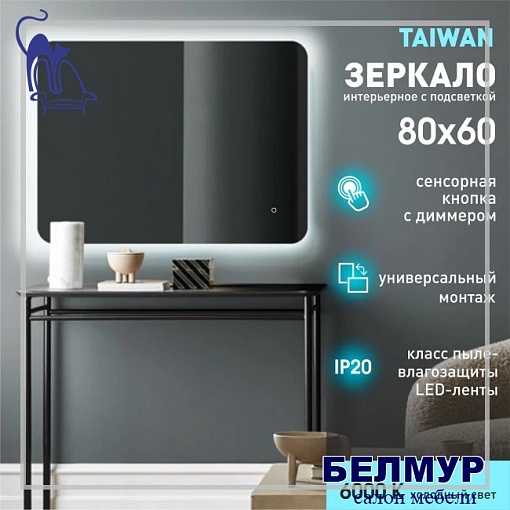 Зеркало с фоновой подсветкой и сенсорной кнопкой Taiwan 8060s-6 (80x60 см) - холодный свет