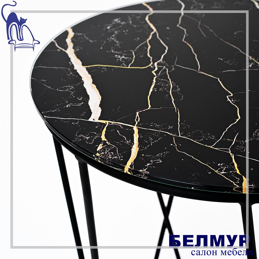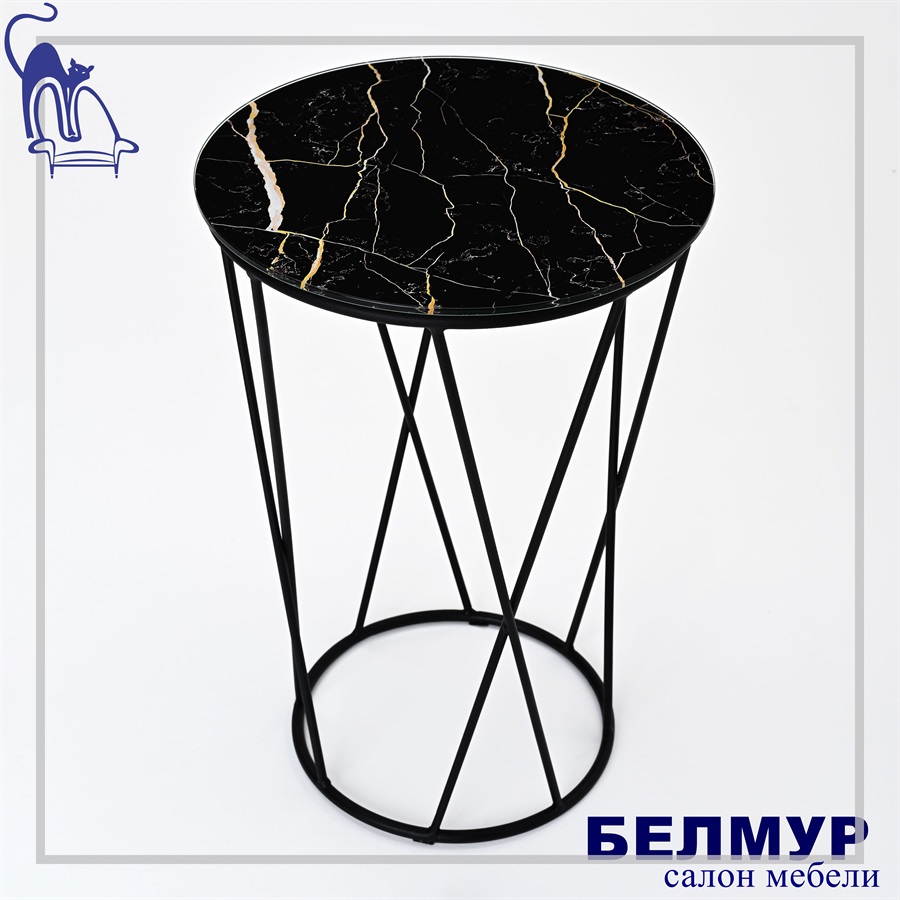 Стол журнальный АЛЛЮР, черный мрамор/черный, d400*600