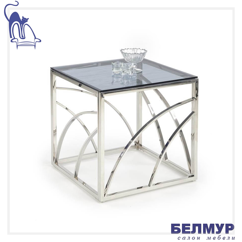 Стол журнальный HALMAR UNIVERSE KWADRAT дымчатый/серебристый, 55/55/55
